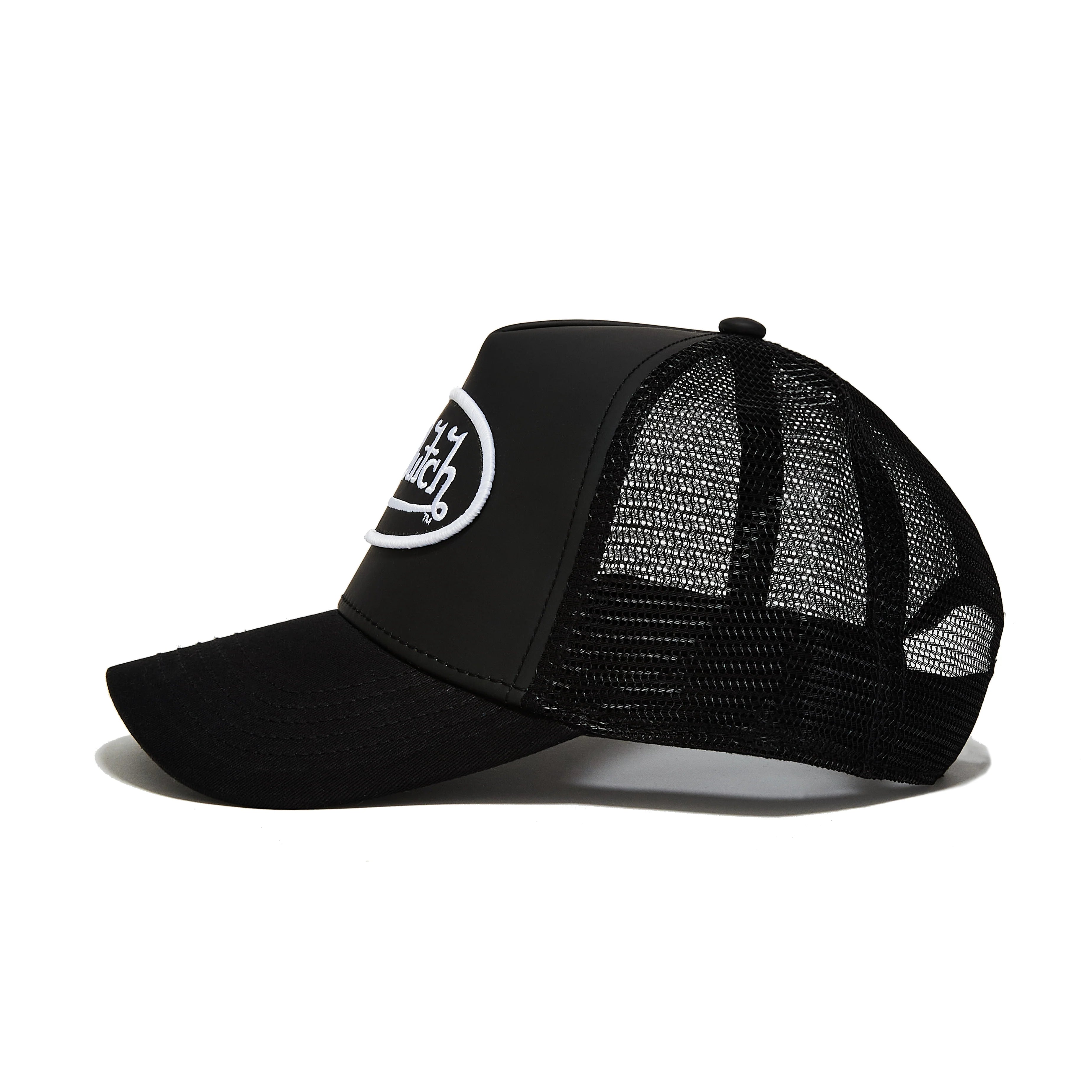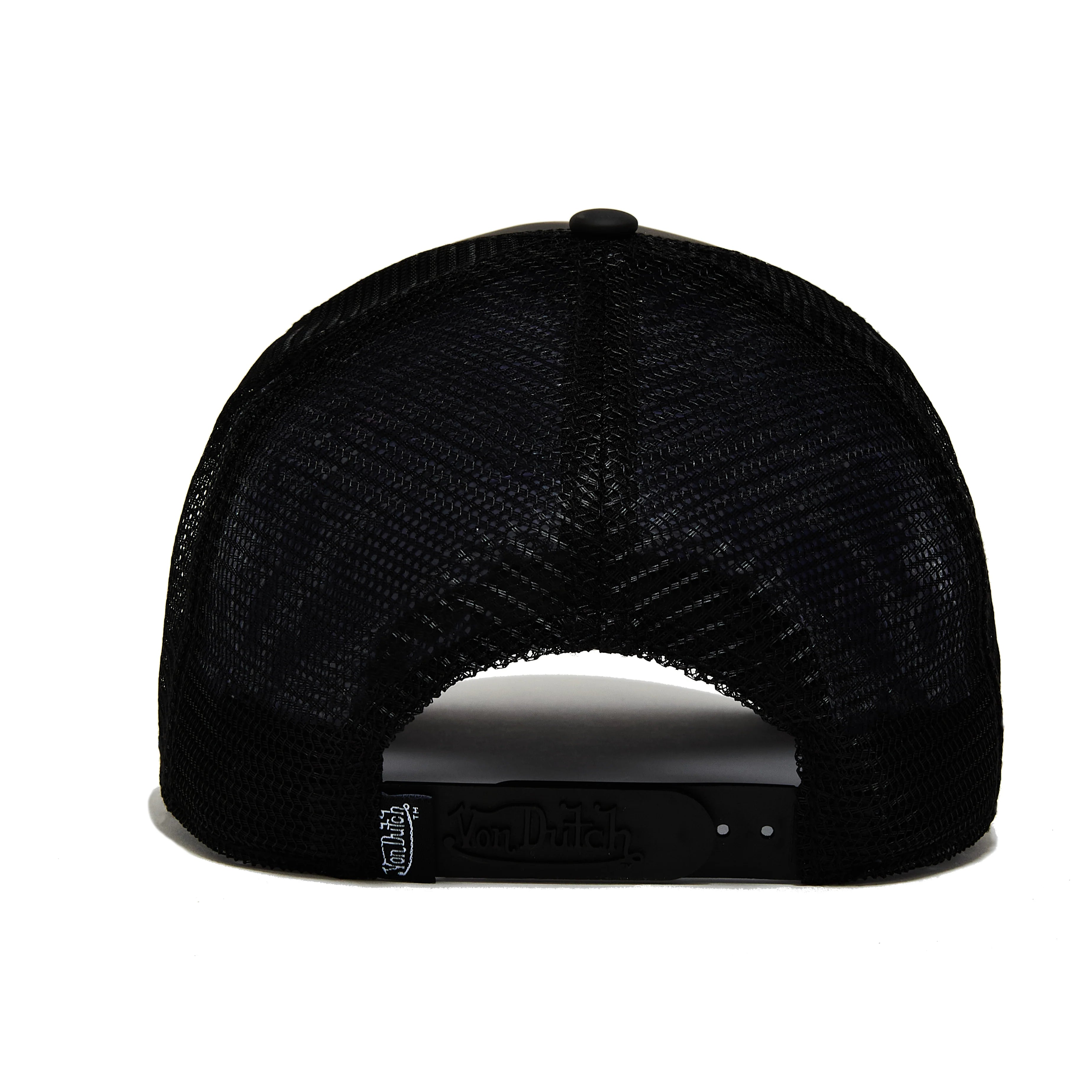 The Black & Green Color Changing Snapback Trucker Hat by Von Dutch features an iconic logo patch, a black breathable mesh rear, and an adjustable snapback panel. All headwear sales are final.