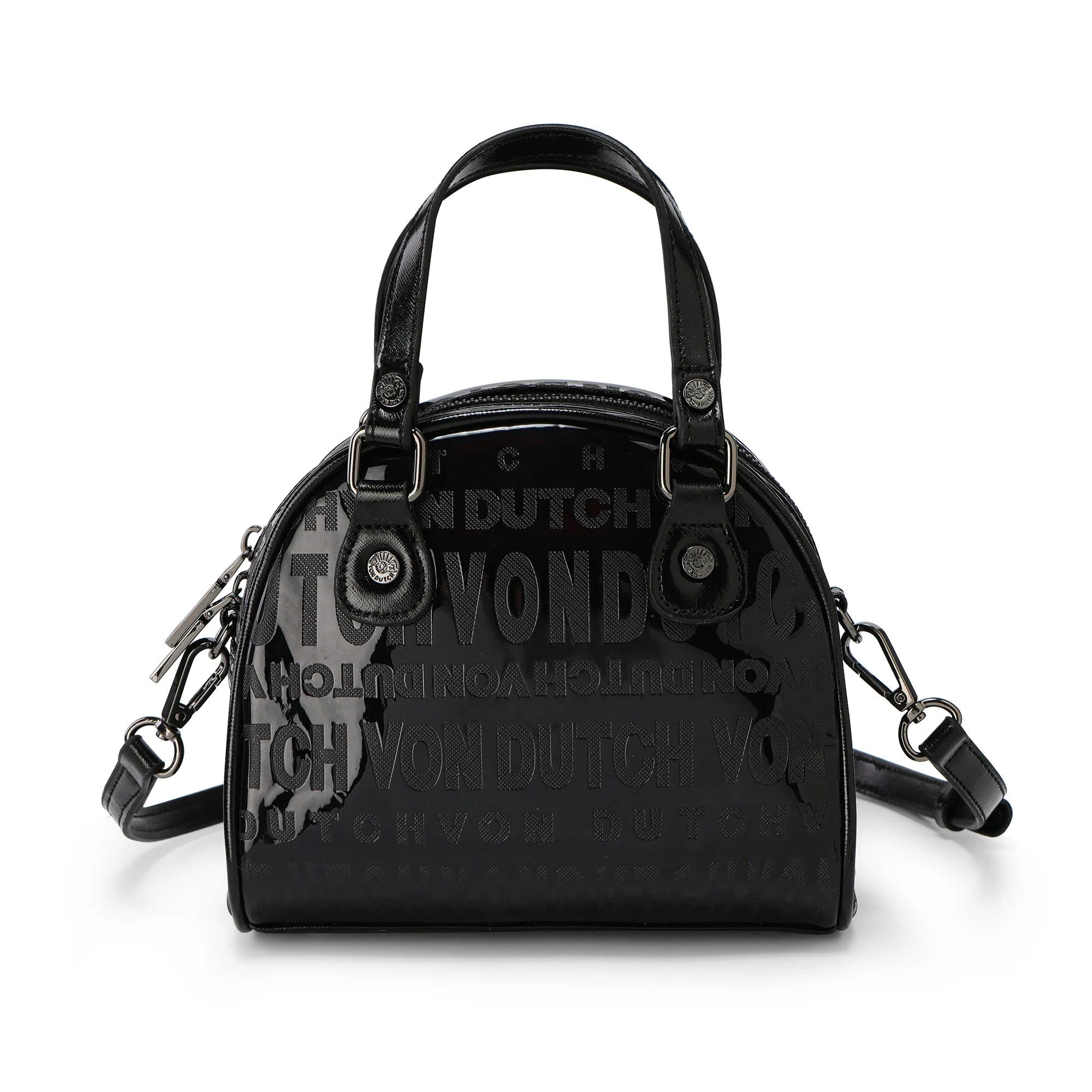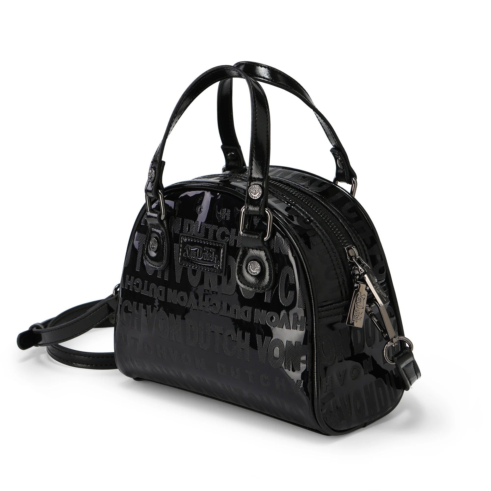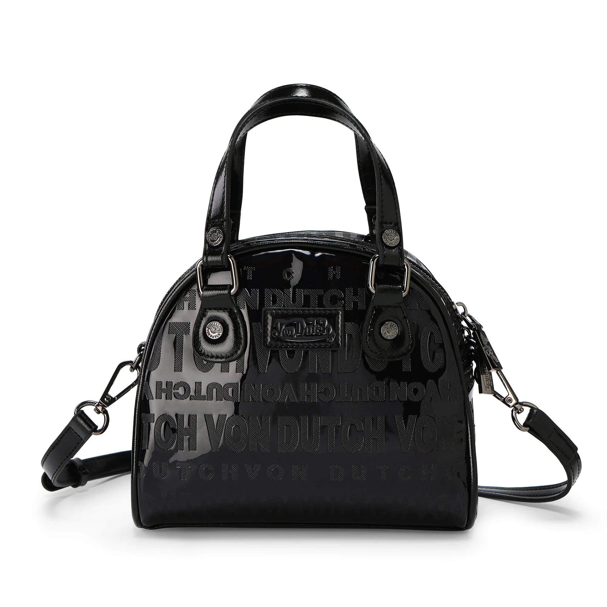 Stand out with understated sophistication in the Black Onyx Reflective Bag from Von Dutch's Reflective Collection. Crafted from soft, vegan patent leather embossed with a repeating Von Dutch logo, this compact staple brings modern shine and structured design to your daily wardrobe.