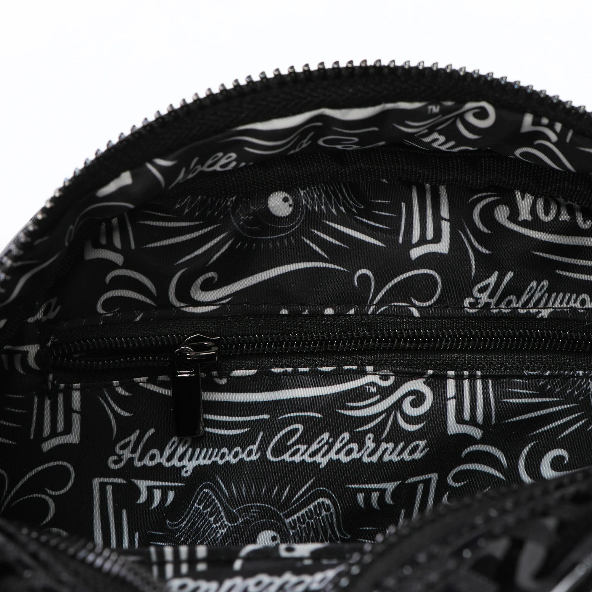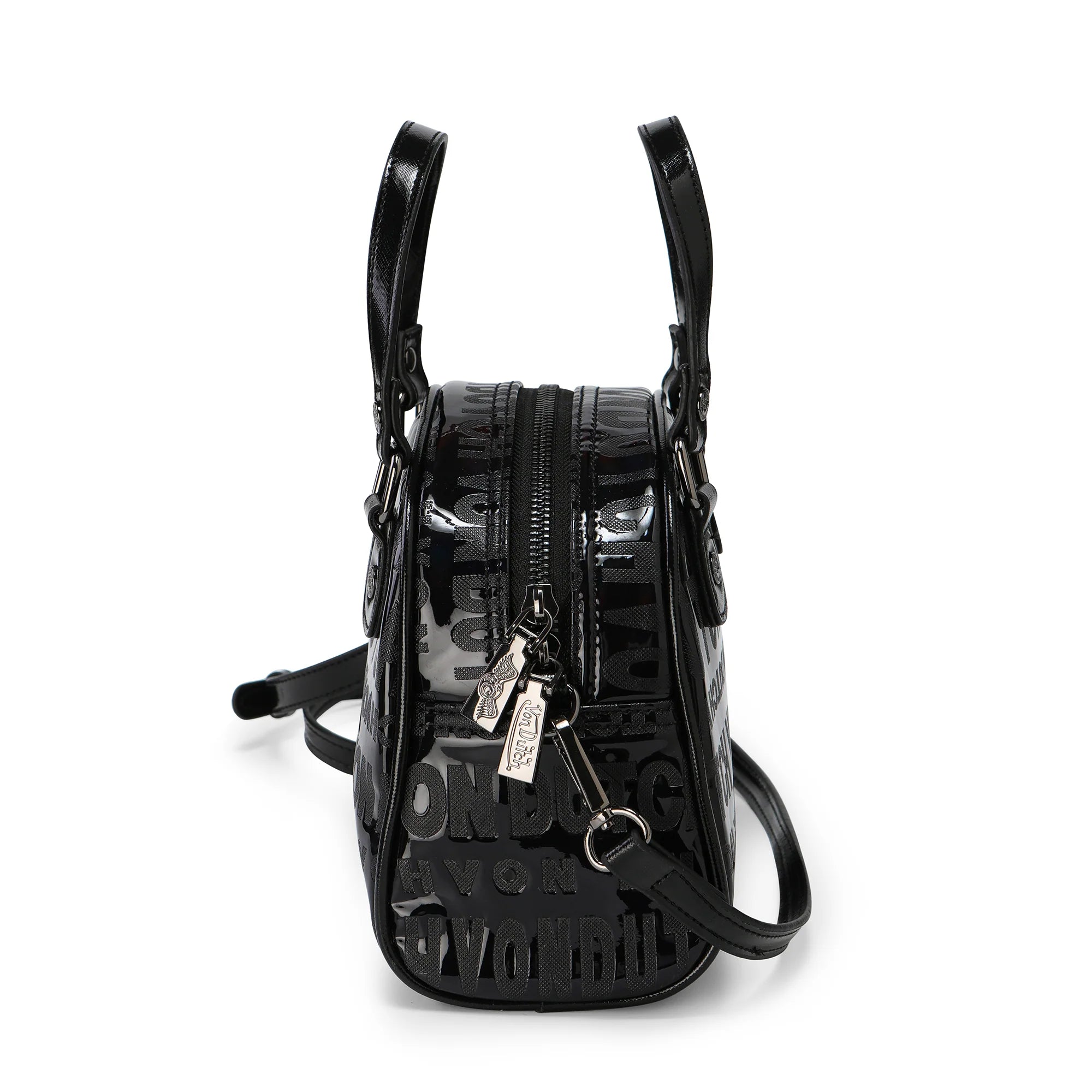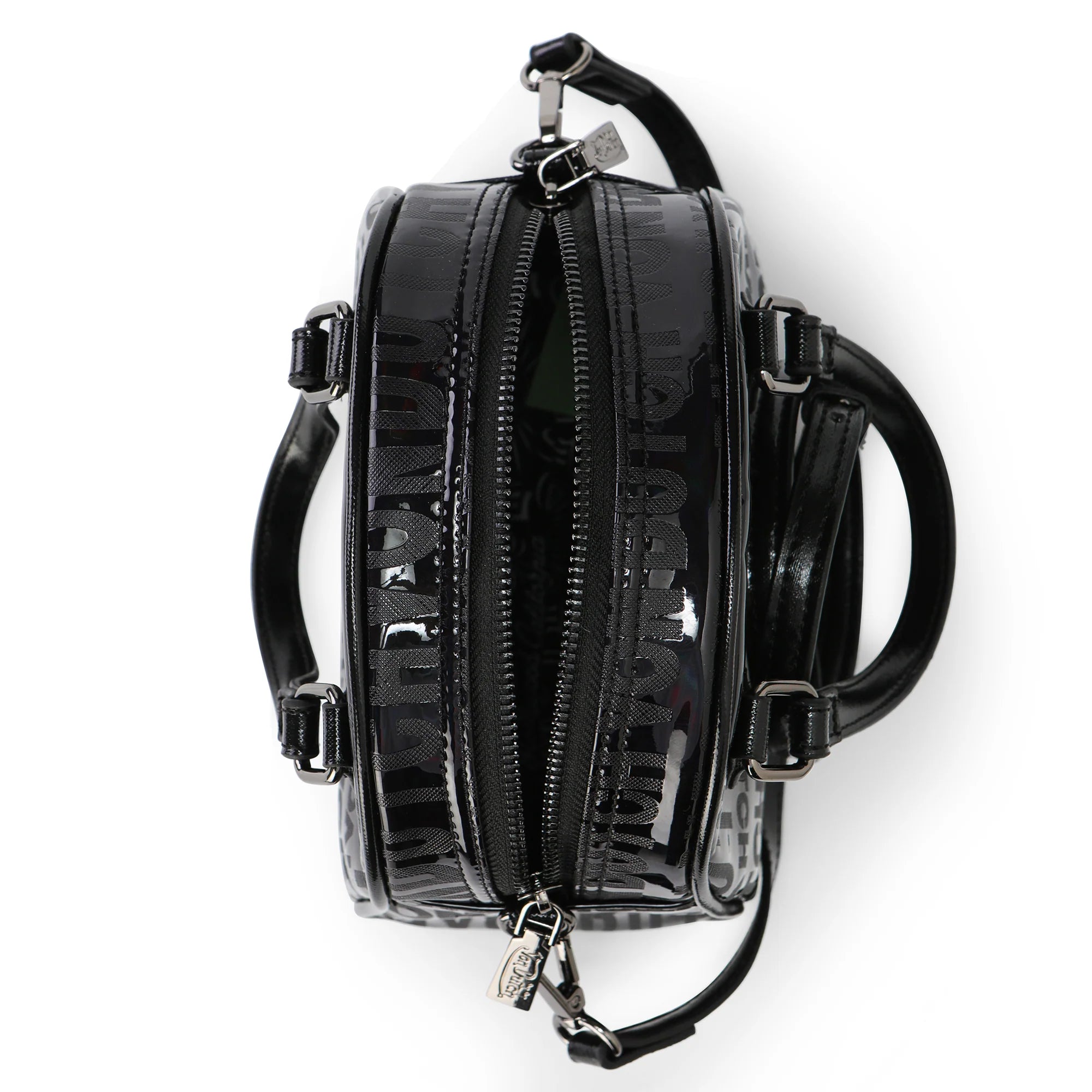 Stand out with understated sophistication in the Black Onyx Reflective Bag from Von Dutch's Reflective Collection. Crafted from soft, vegan patent leather embossed with a repeating Von Dutch logo, this compact staple brings modern shine and structured design to your daily wardrobe.