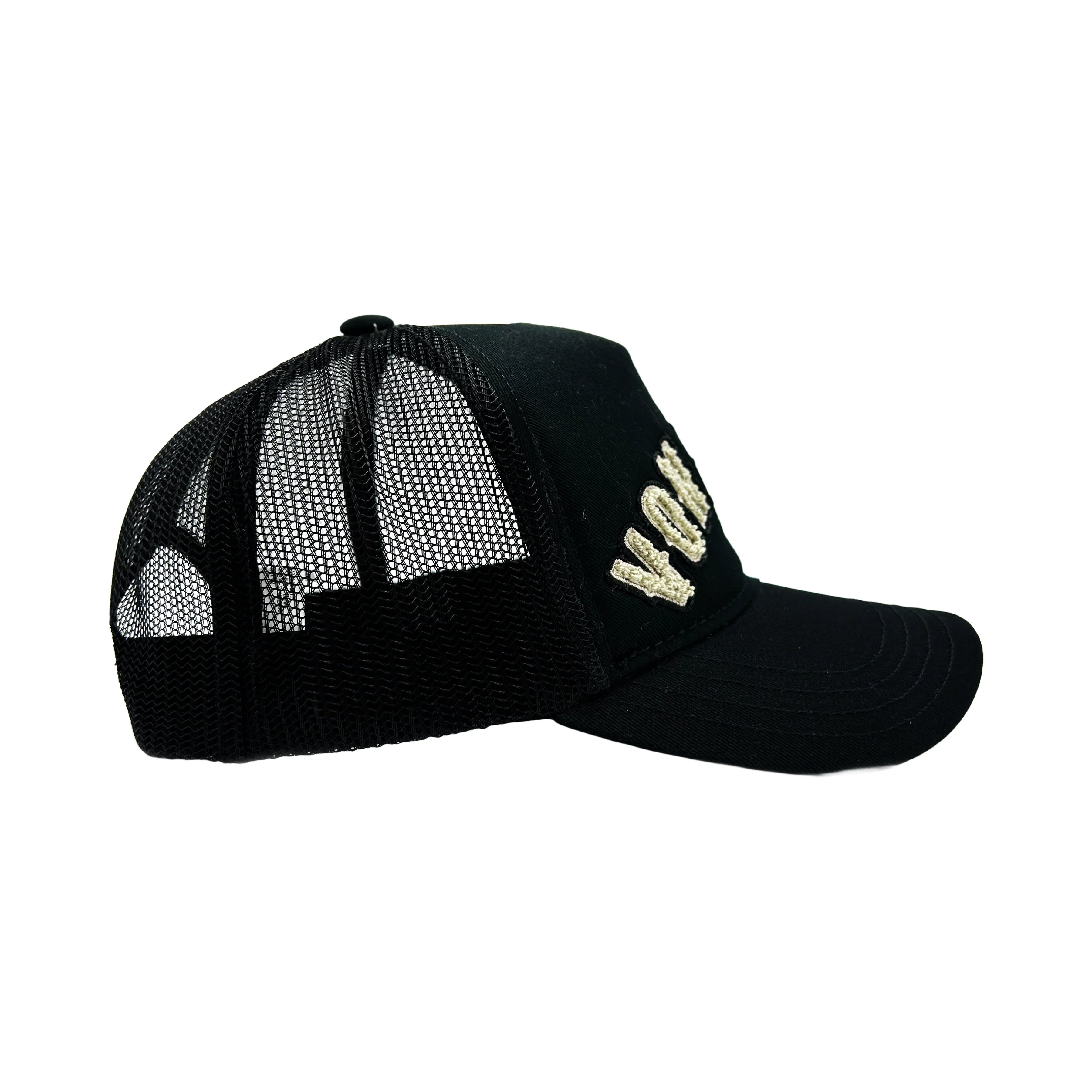 The Von Dutch Snap back Trucker Hat features a distinctive terry cloth logo patches, adding a unique texture and style to your look. With its classic design, this hat is perfect for any casual outfit.