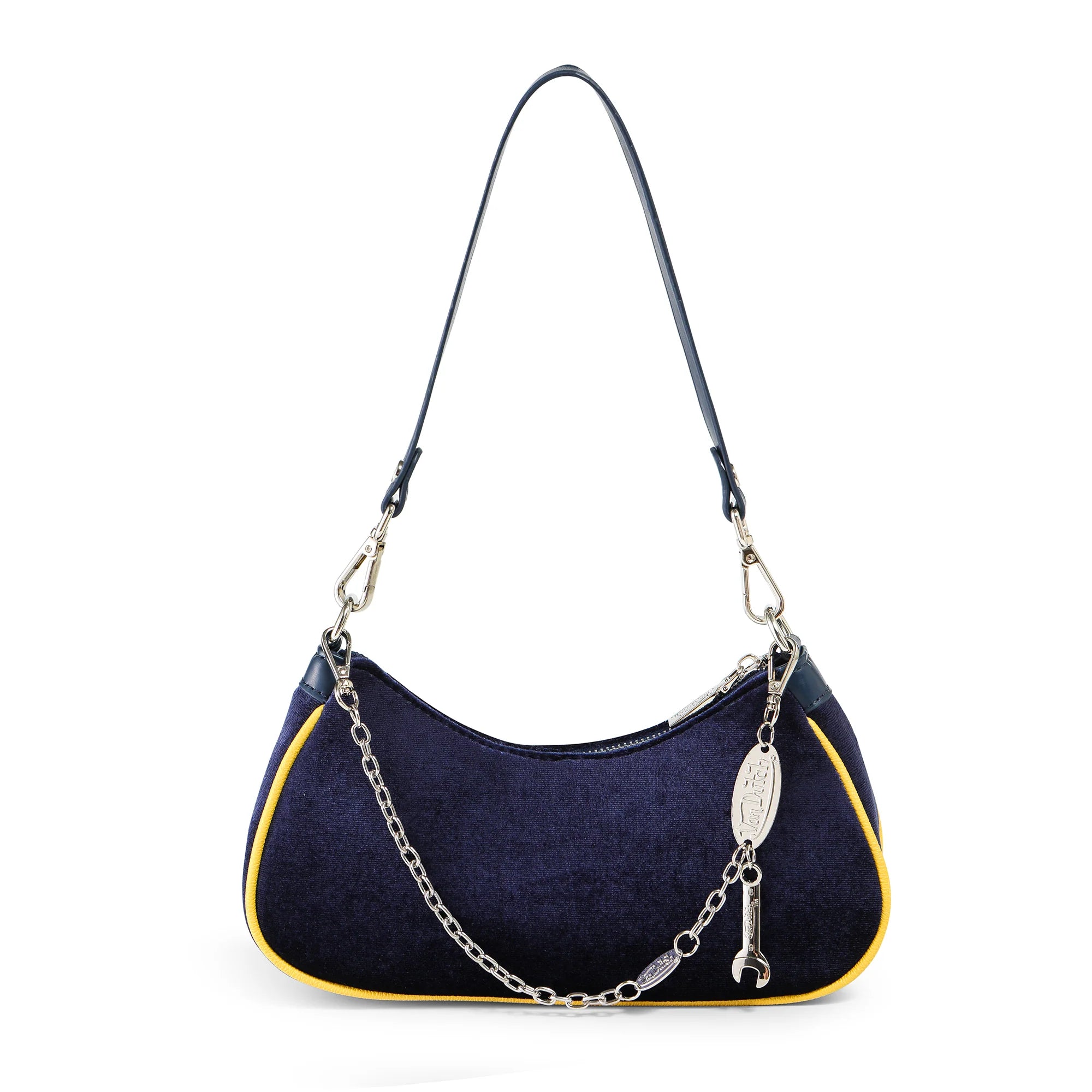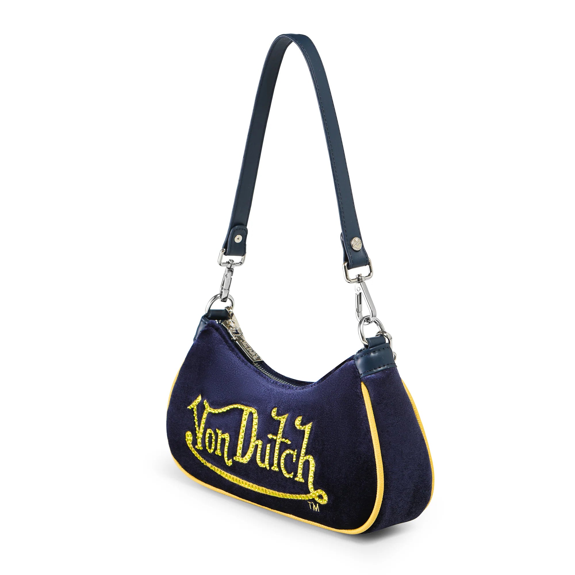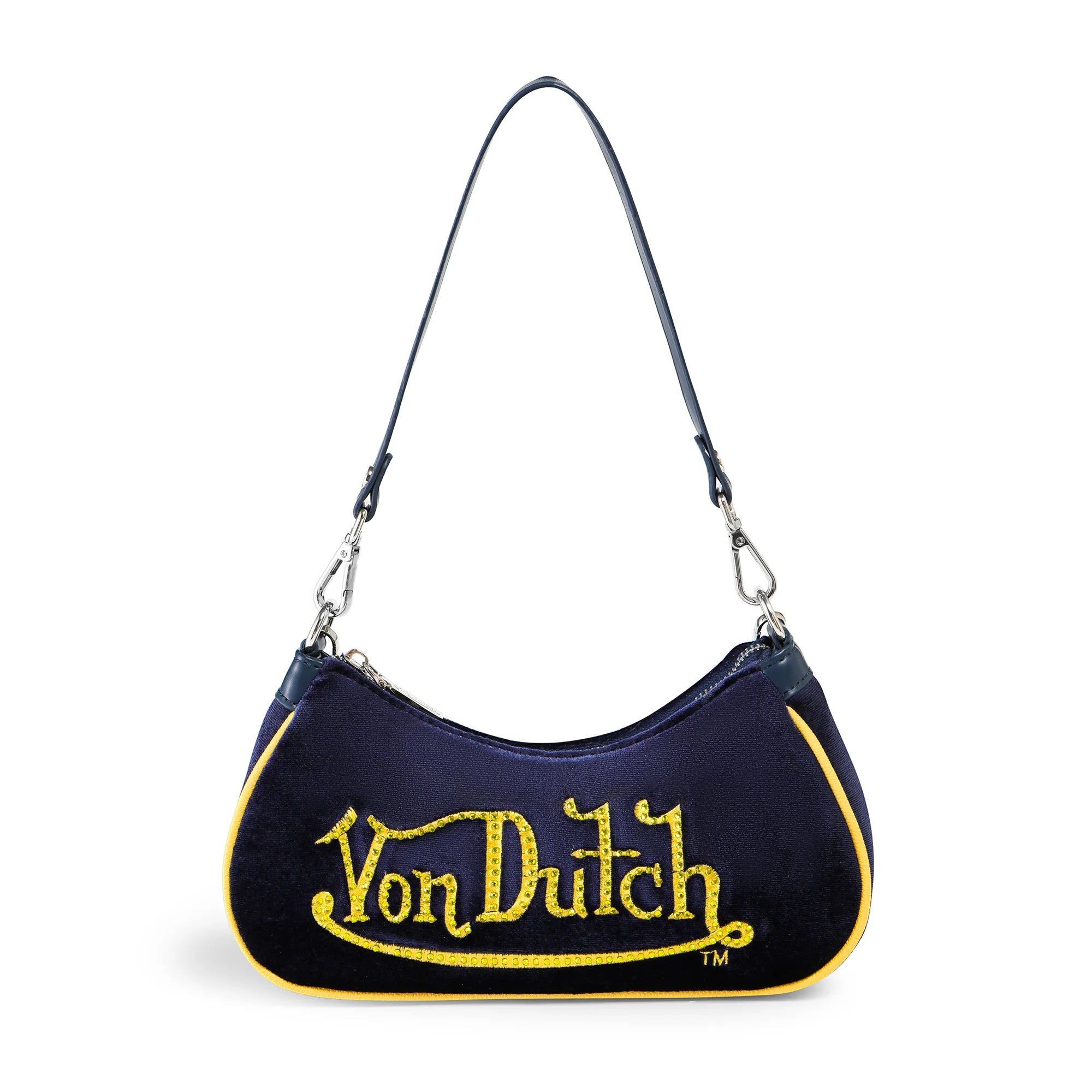 Von Dutch Blue & Yellow Rhinestone Velvet Shoulder Bag