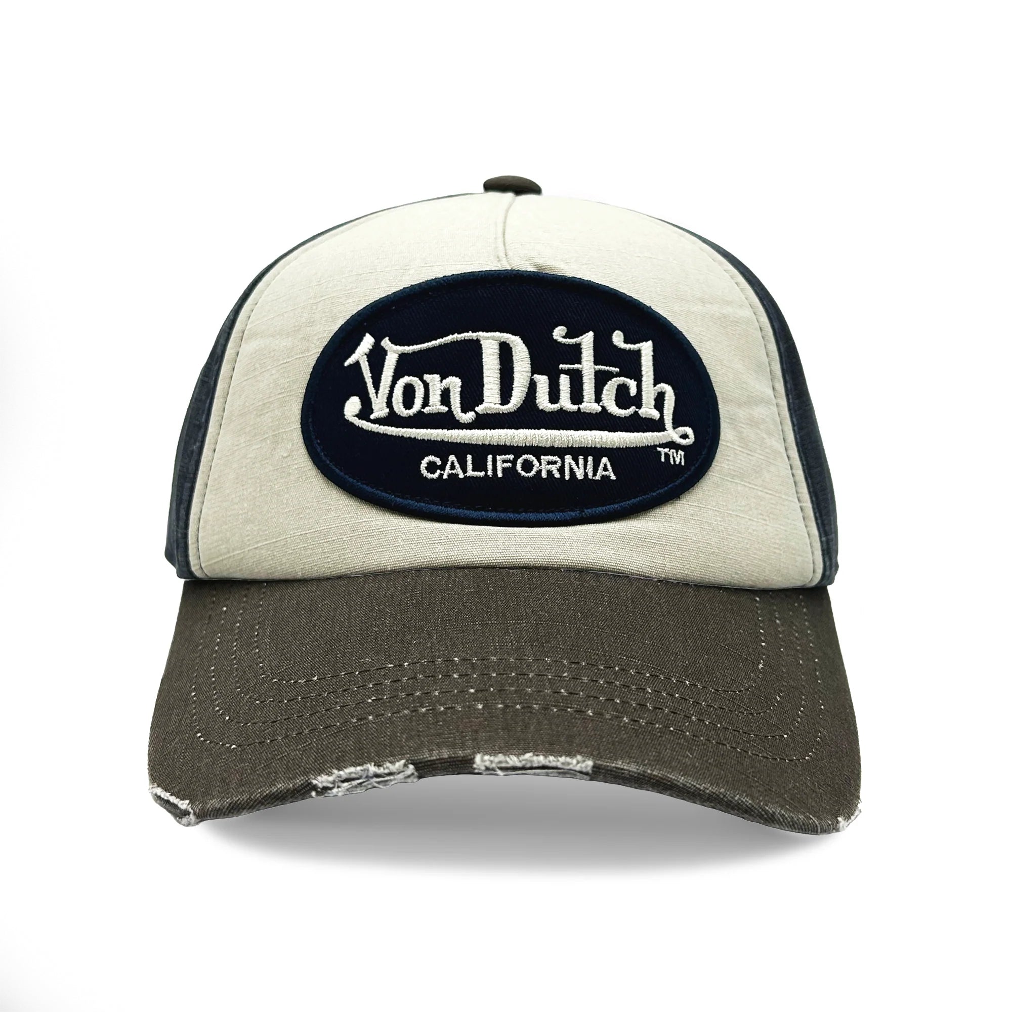 The Von Dutch Baseball Velcro Back Hat features the classic logo patch on the front, a distressed grey brim, and an adjustable Velcro back closure for a secure fit. With a structured front panel and a curved bill, this hat offers a clean, worn-in look with everyday comfort.