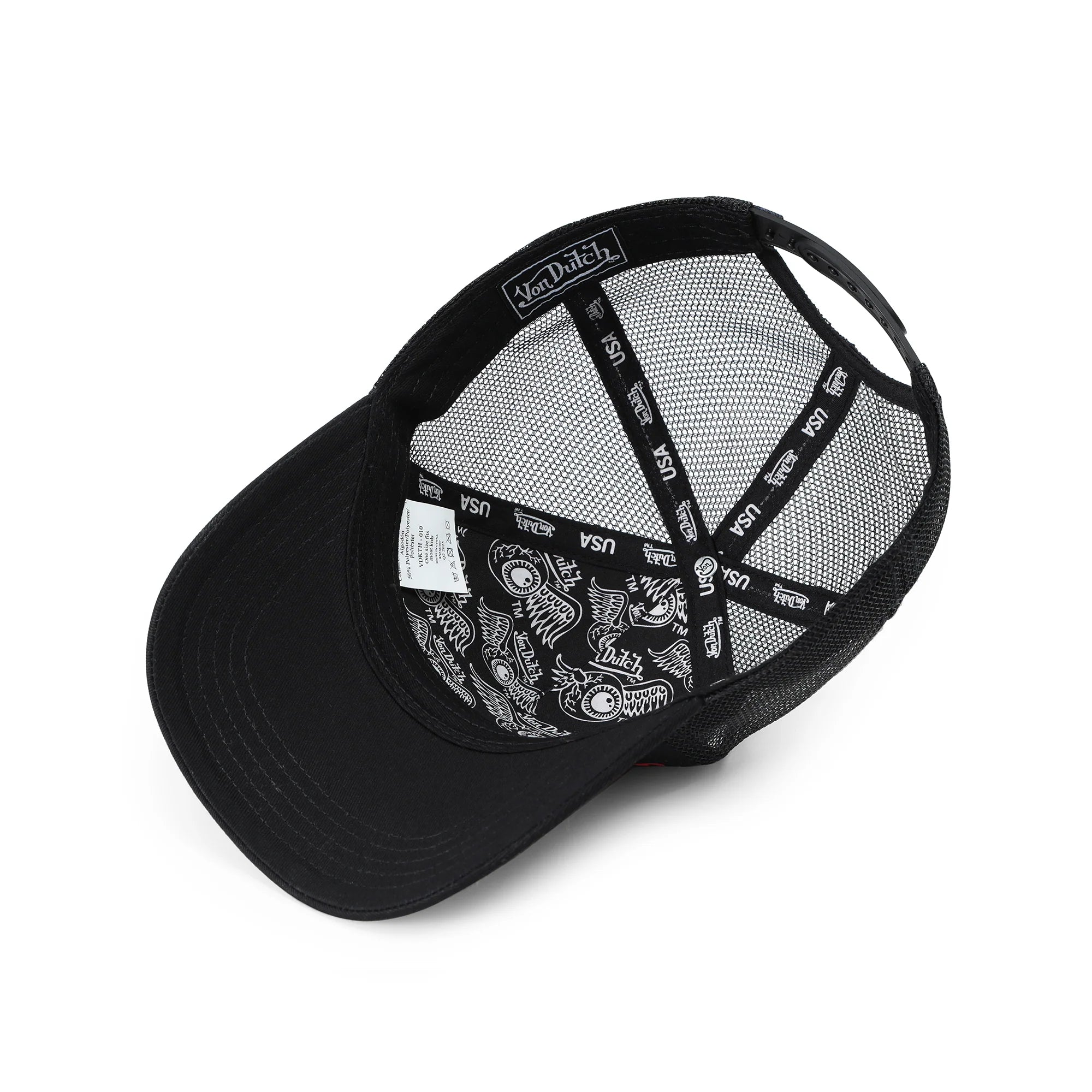 This Classic Snapback Trucker Hat by Von Dutch features an block print on the front panel with iconic logo patch on front, breathable mesh rear, and an adjustable snapback panel. All headwear sales are final.