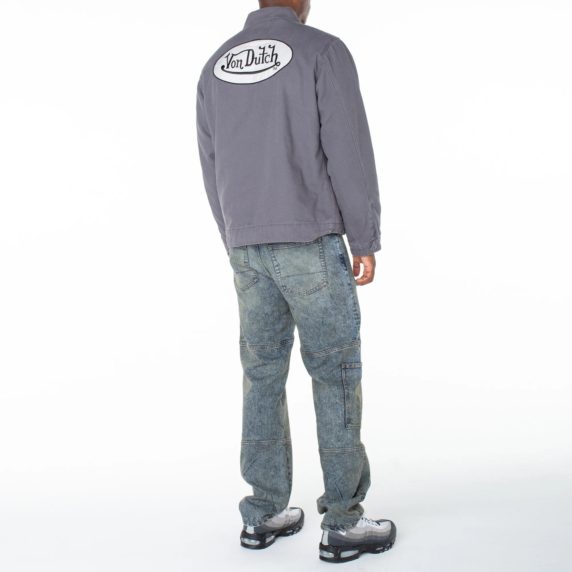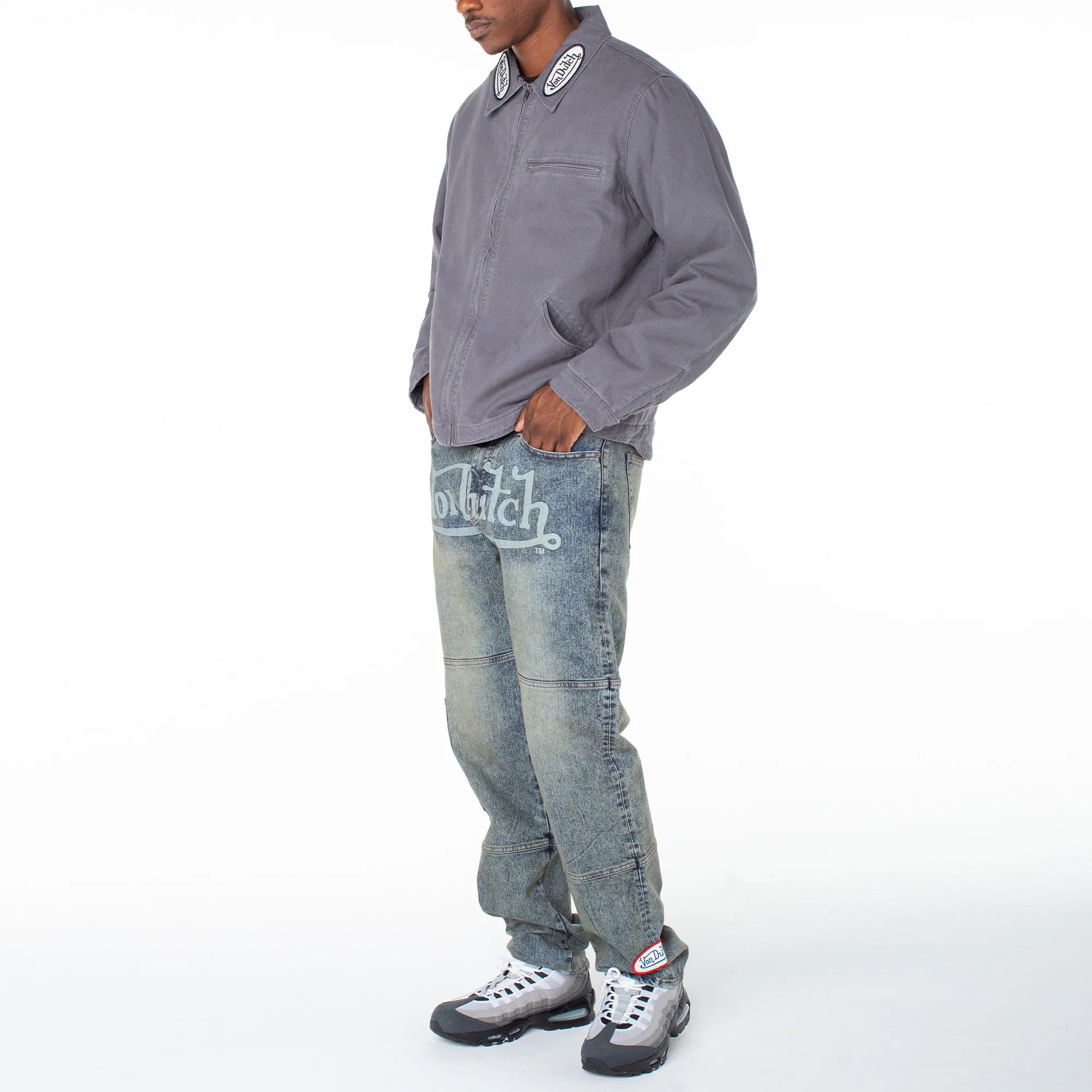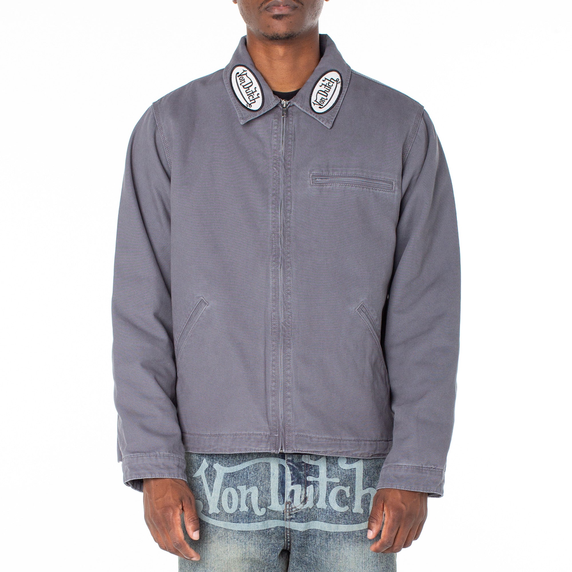 Lined and quilted, this denim zip-up worker's jacket makes for an ideal wardrobe staple during the colder months, designed with classic patch add-ons at the collar and back for some effortless edge.