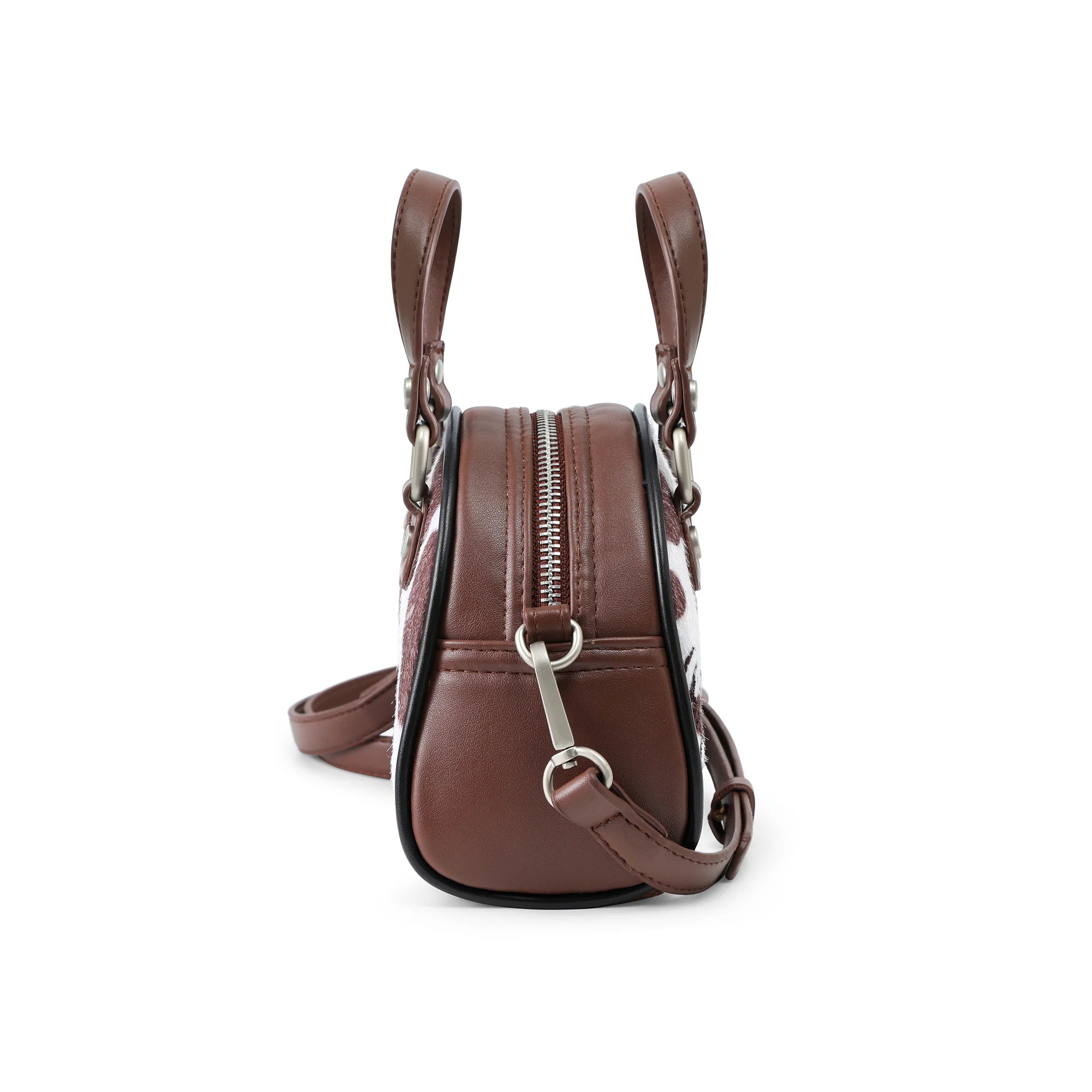 Von Dutch Mini Cow Print Bowling Bag - Brown & White