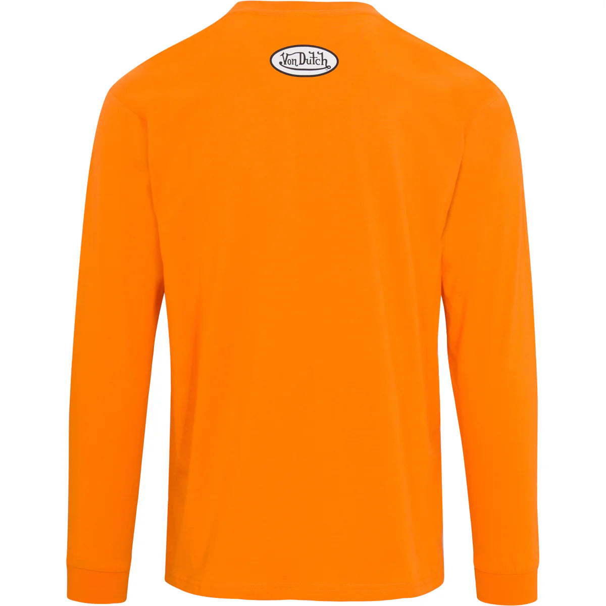 New Von Dutch Originals Collection. This printed long sleeve tee, offers an original, throwback style and slim fit. Signature Von Dutch Logo across the chest and small logo patch graphic on the upper back.