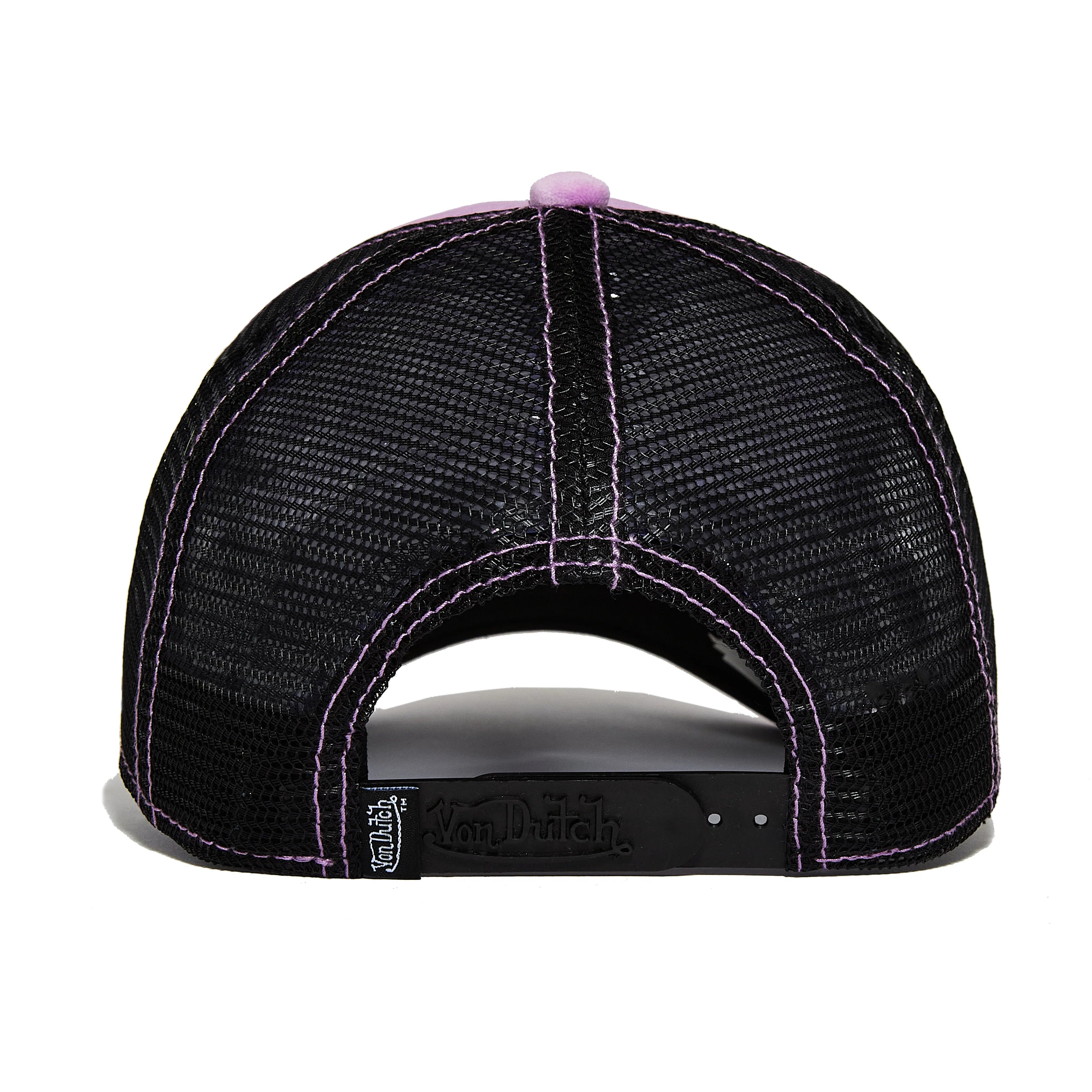 This Classic Snapback Trucker Hat by Von Dutch features a light purple velvet with the iconic logo patch on front, black breathable mesh rear, and an adjustable snapback panel. All headwear sales are final.