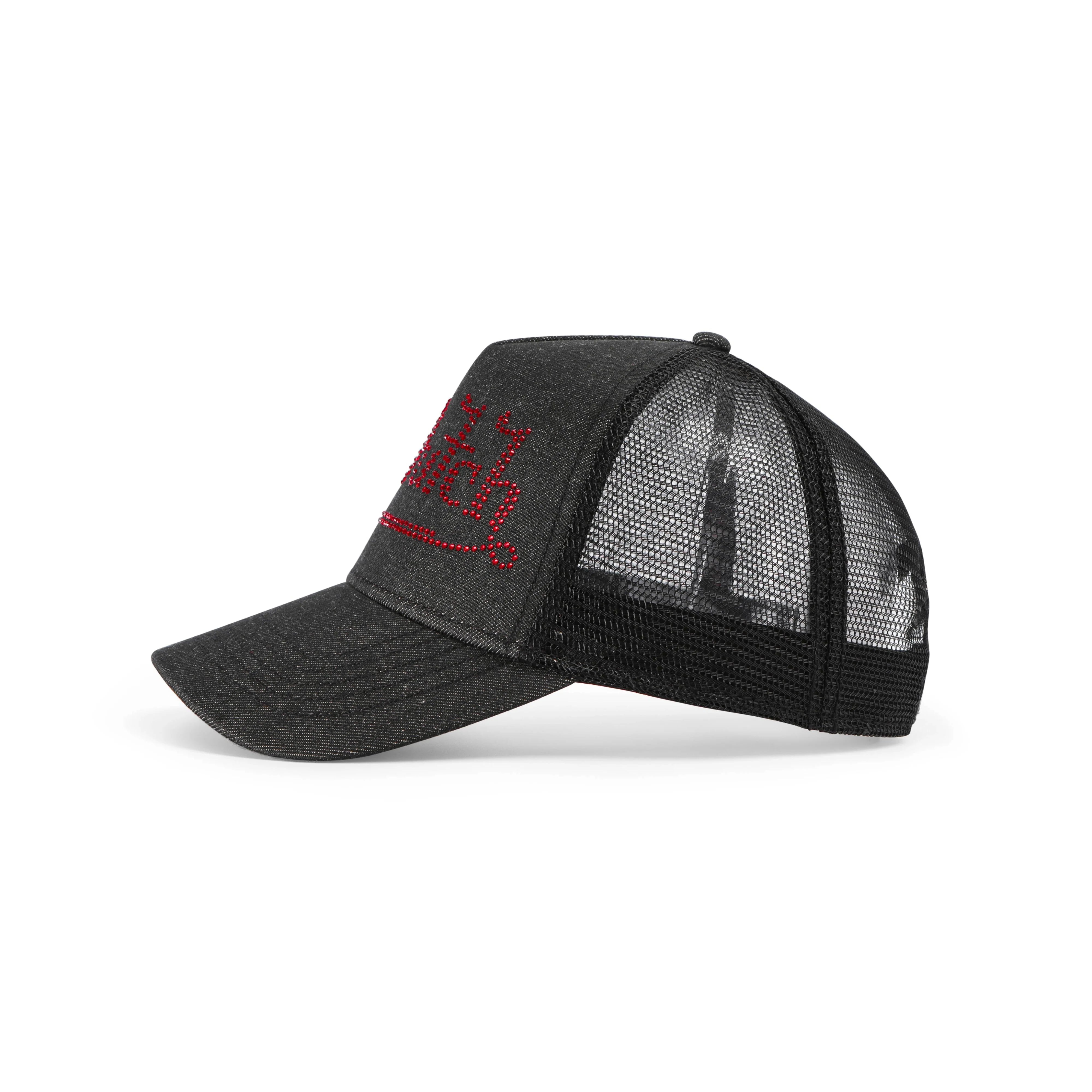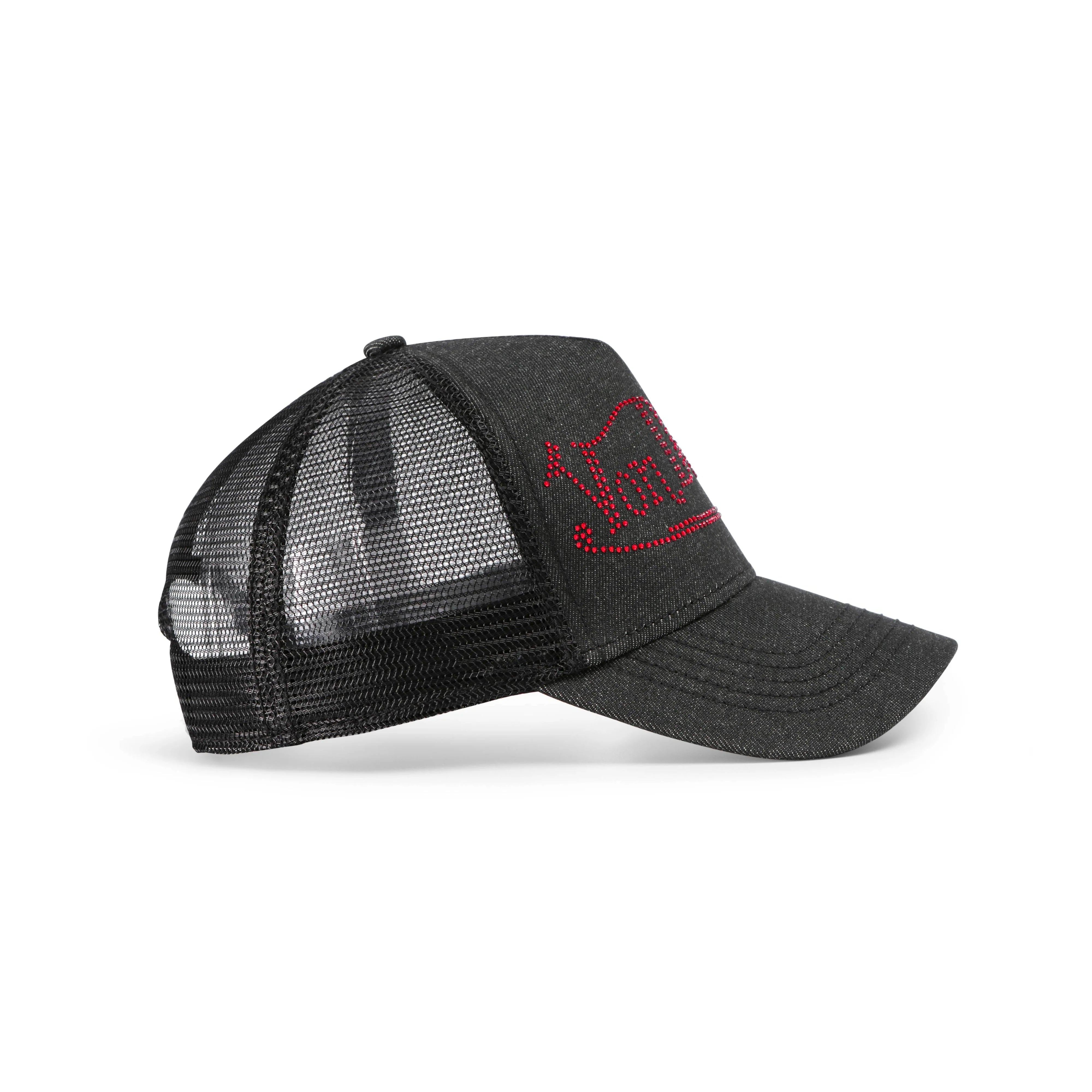 Von Dutch Rhinestone Trucker Hat - Black with Red Rhinestones