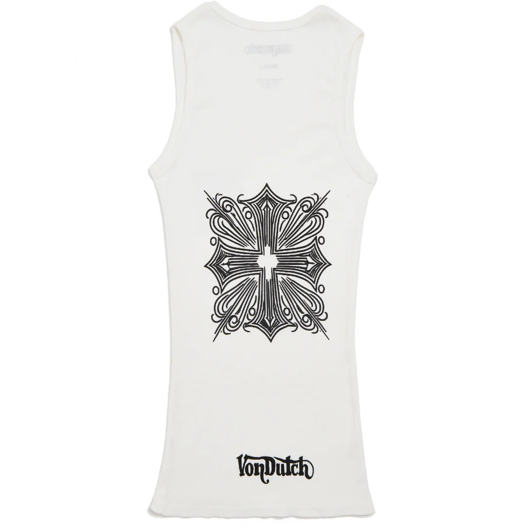 Von Dutch Tank Top. Made from soft stretch cotton, this white tank features a chopper crest on the front and back.